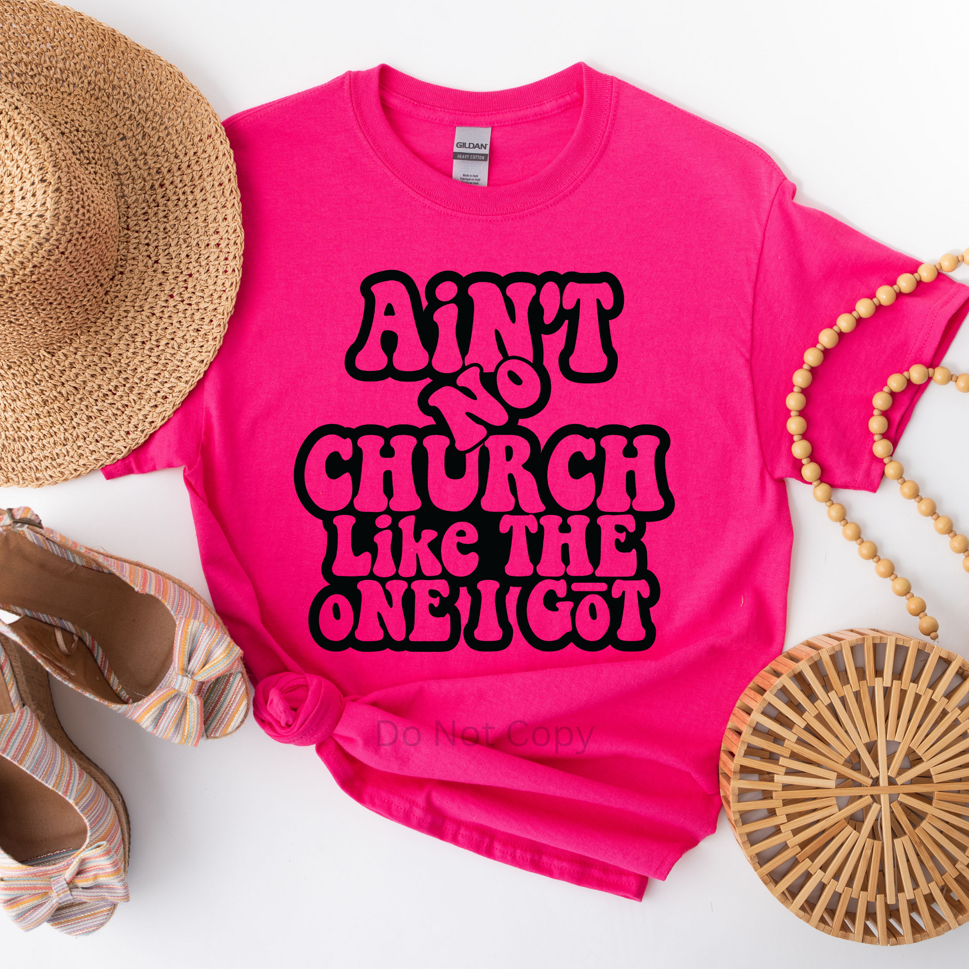 Unleash your passion and pride for your church with the Ain't No Church Like The One I Got Screen Print Transfer. This powerful design will inspire and engage others, while showcasing your unique style and beliefs. Add it to your wardrobe or personalize homeware for a bold and impactful statement. No other church can compare!