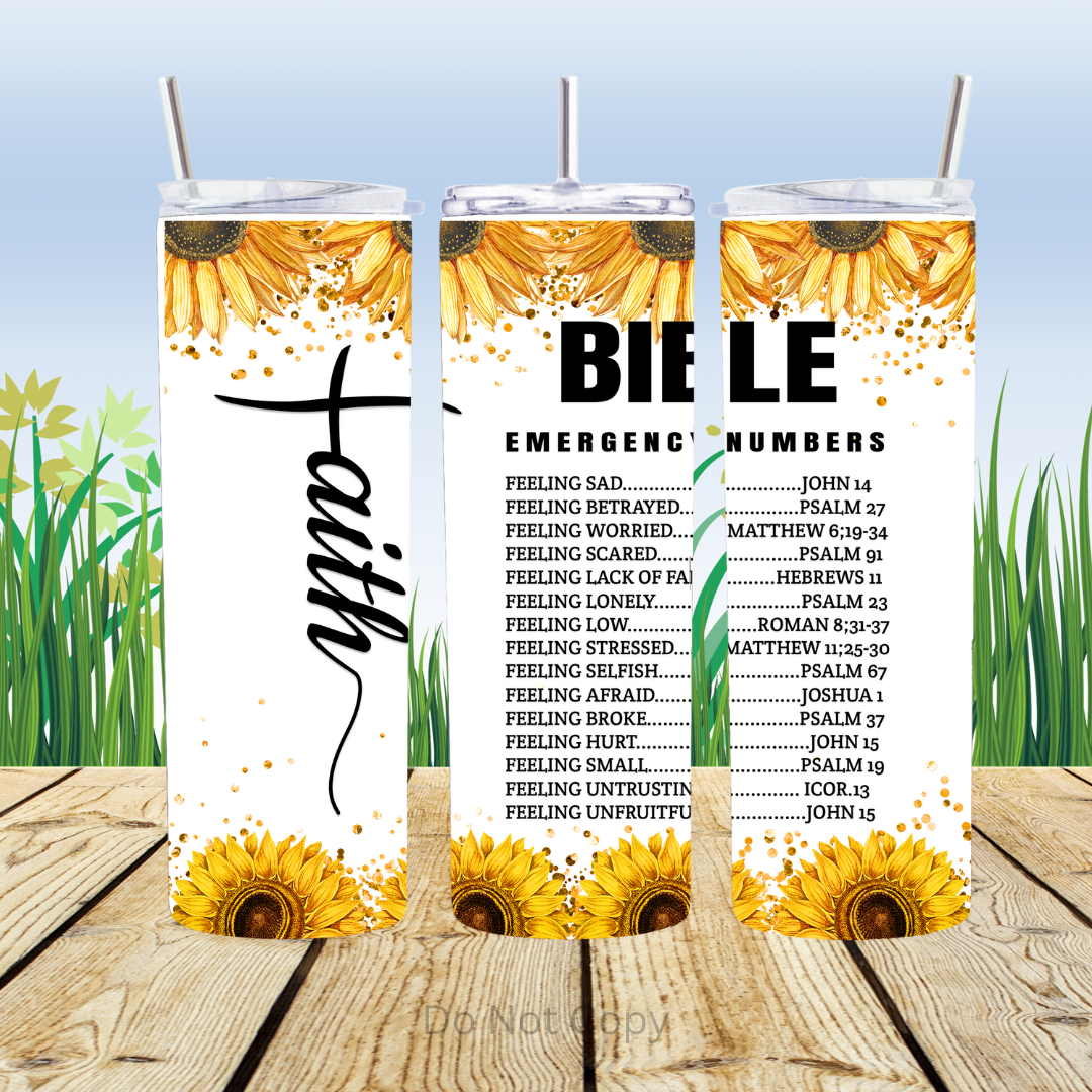 Bible Emergency Numbers 20oz Tumbler Sublimation Transfer ONLY - This is NOT a Tumbler