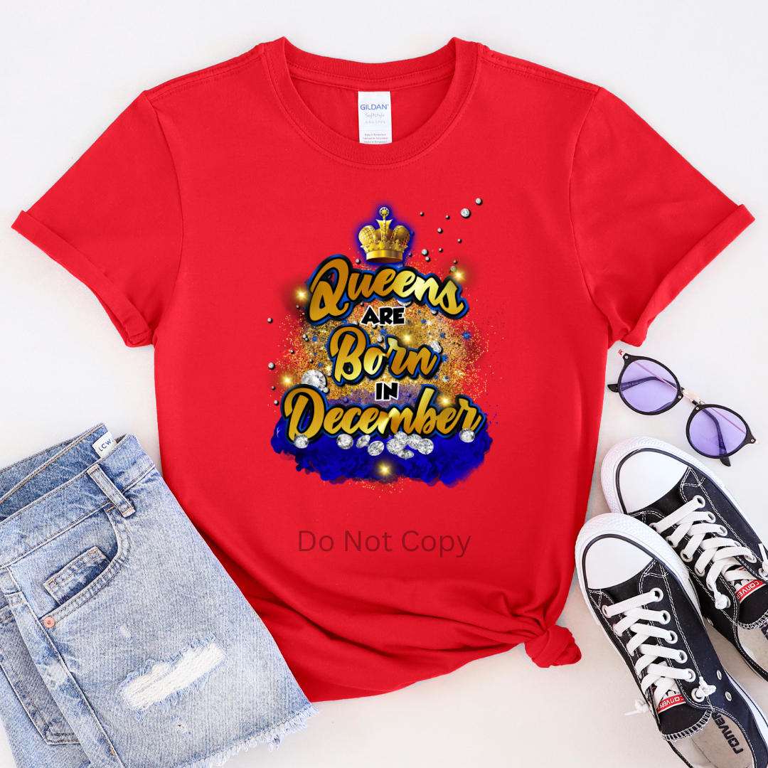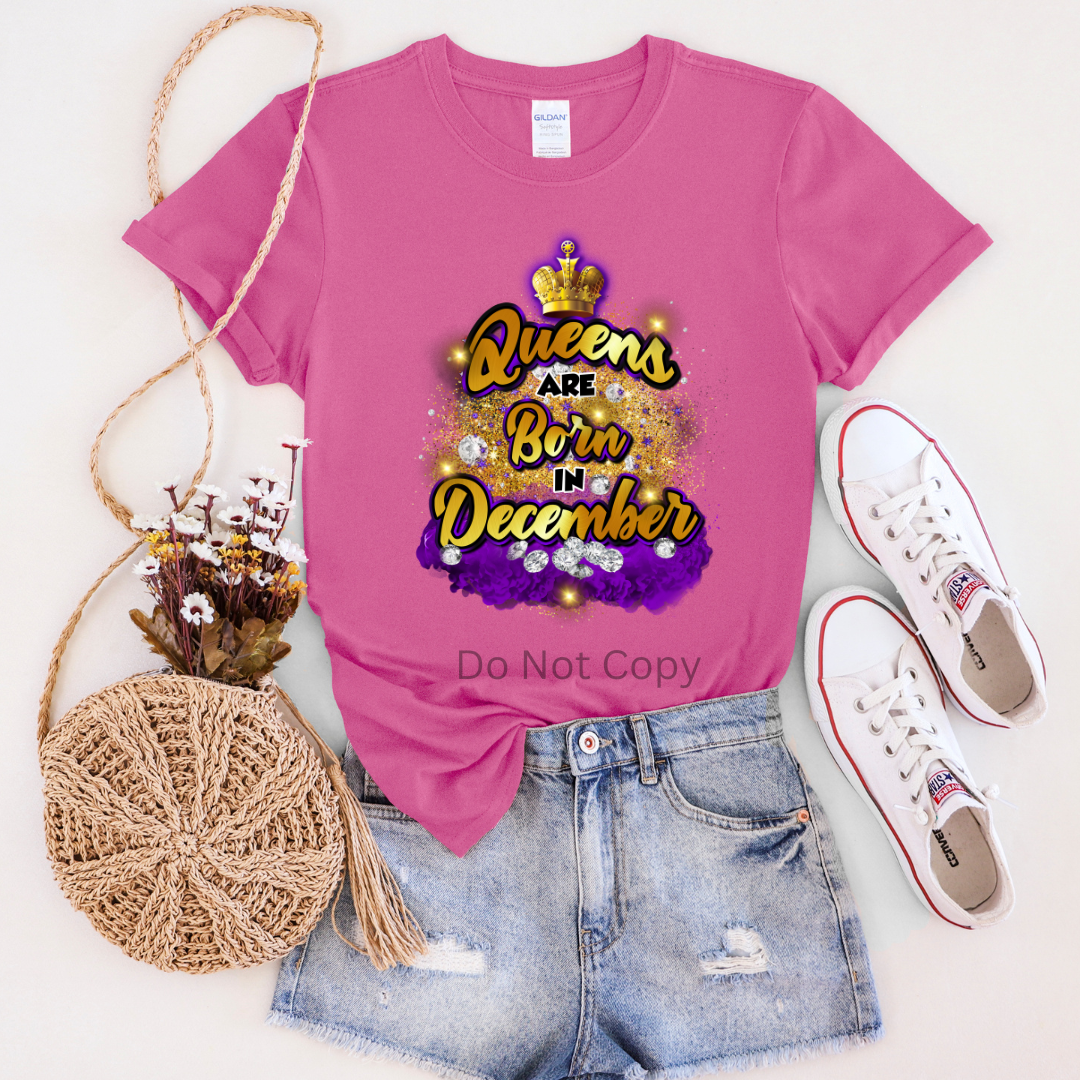 Queens Are Born In December DTF Transfer ONLY - This is NOT a T Shirt