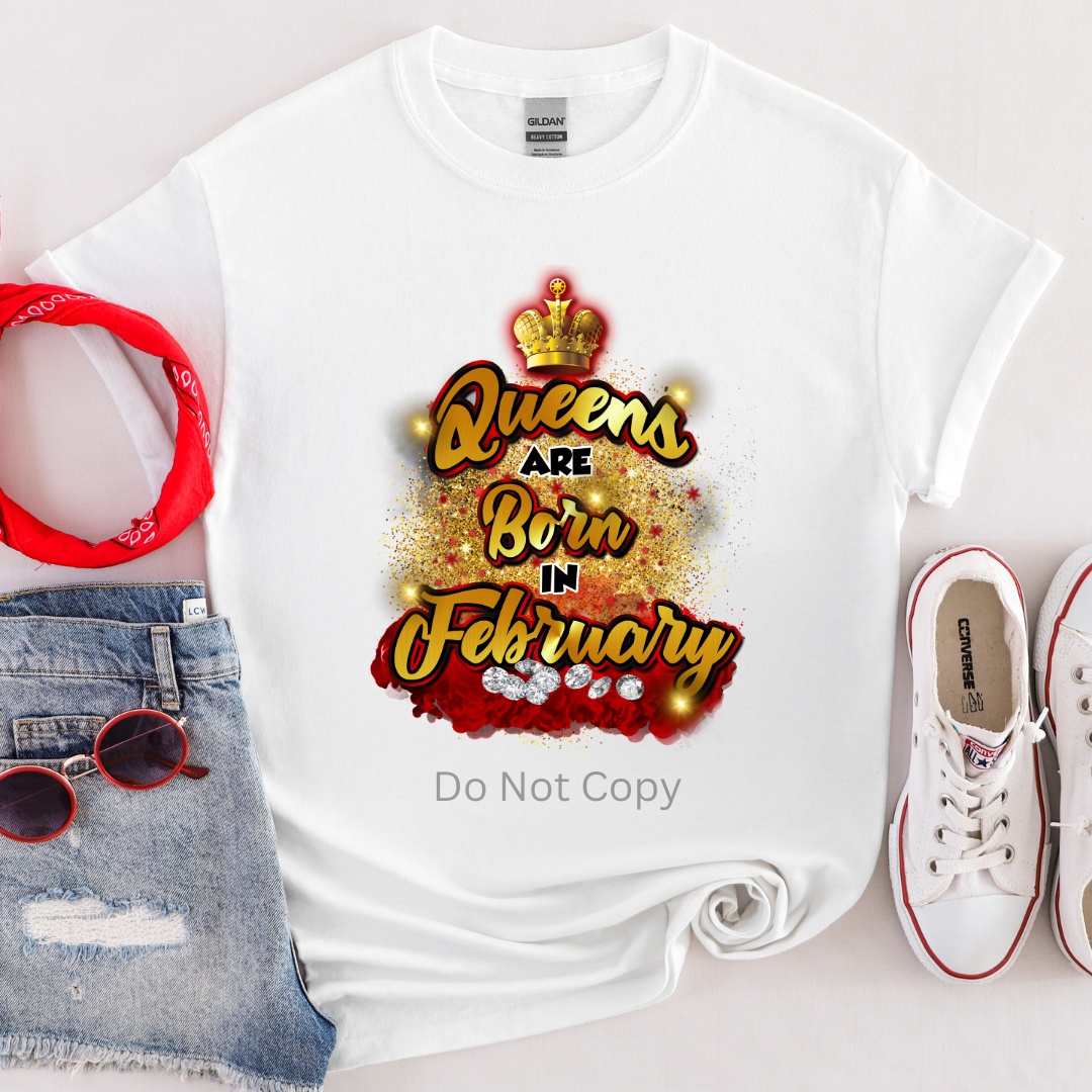 Queens Are Born In February DTF Transfer ONLY - This is NOT a T Shirt