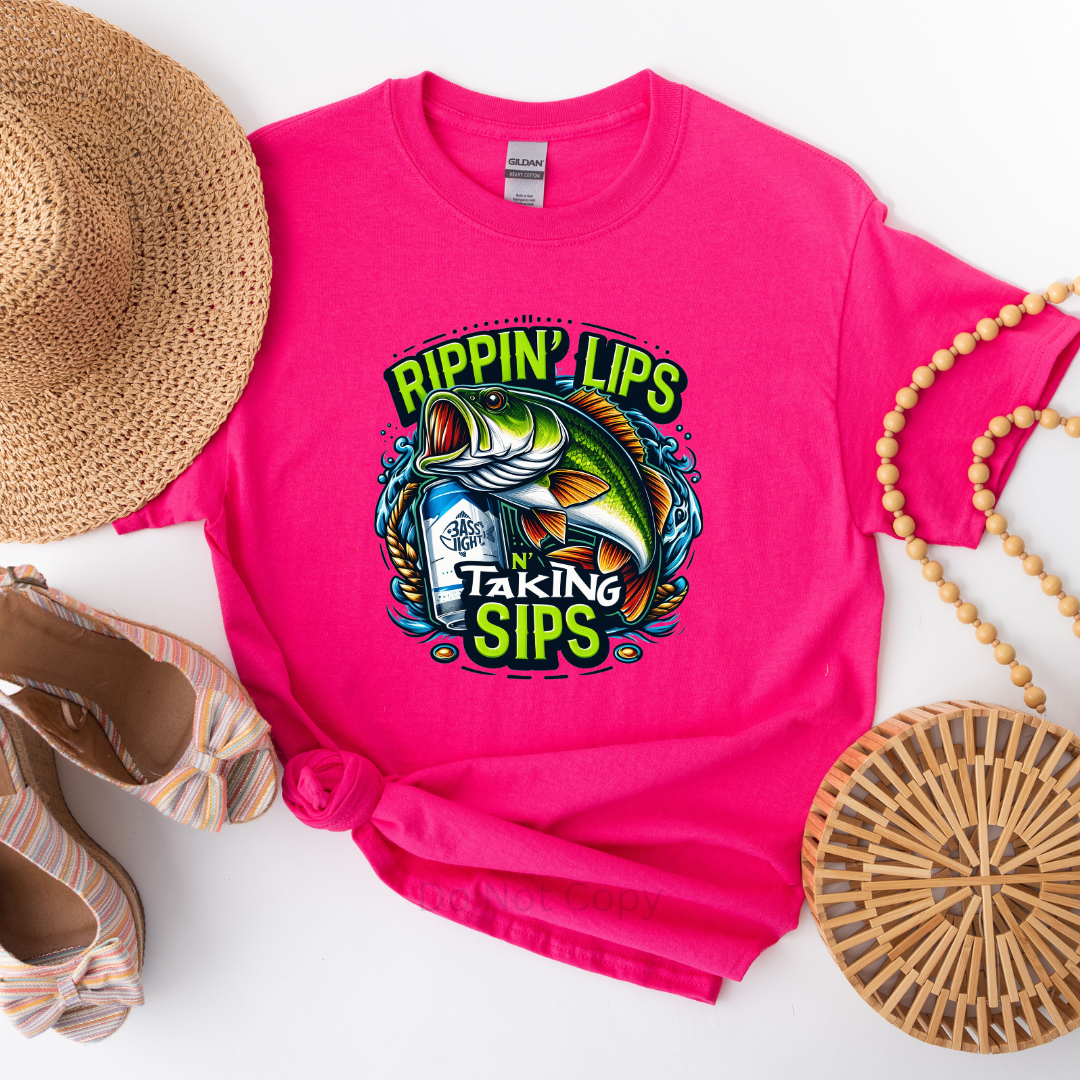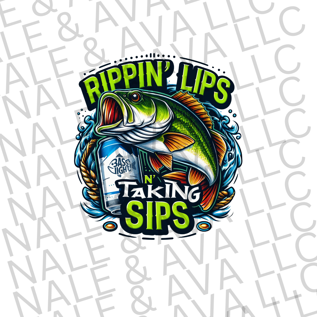 Get ready to reel in the big ones with Rippin Lips N Taking Sips DTF Transfer! This high-quality transfer sticker is perfect for any fishing enthusiast. Show off your passion for the sport and inspire others to get out on the water. Durable, weather-resistant, and easy to apply, it's the perfect addition to your fishing gear.