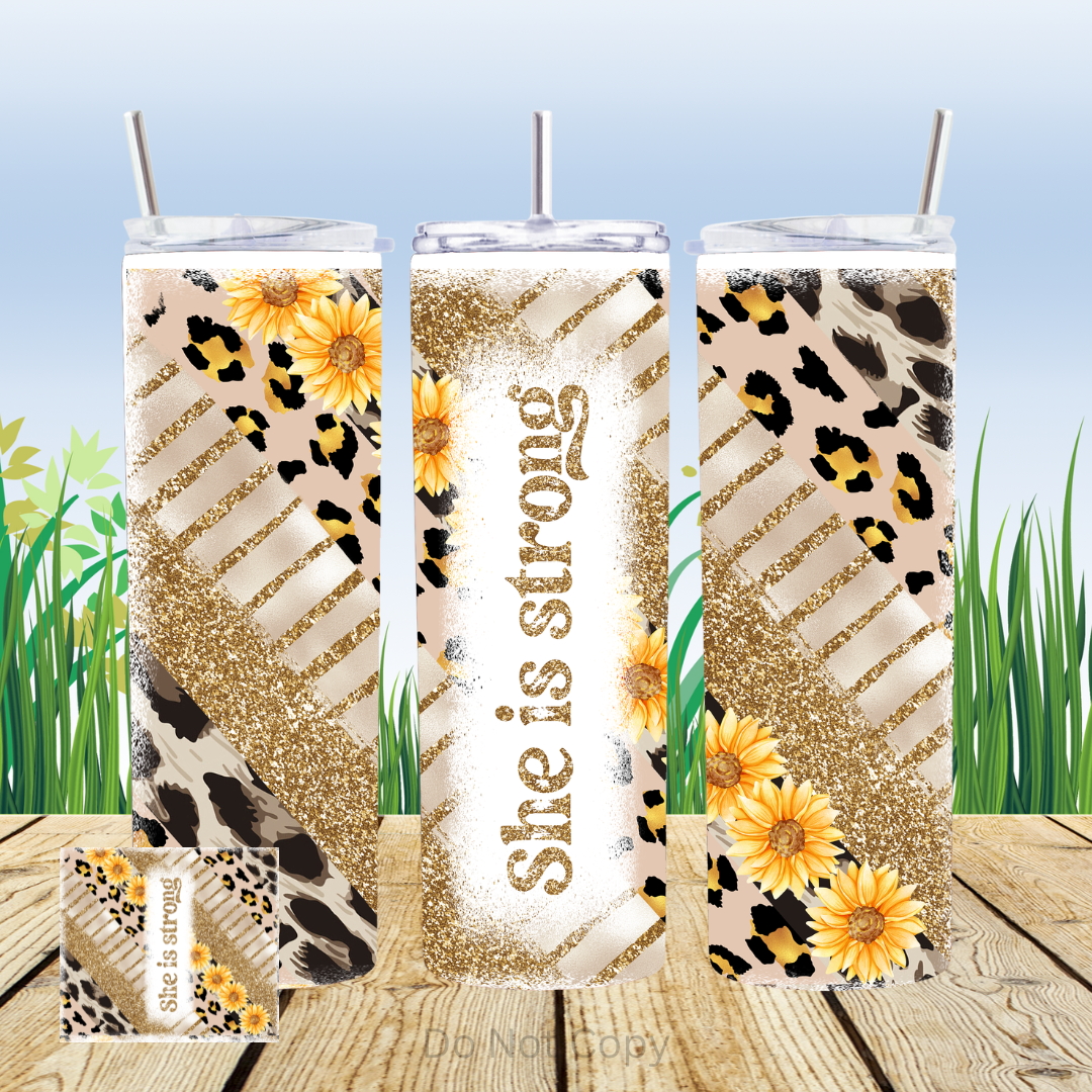 She Is Strong Leopard 20oz Tumbler Sublimation Transfer ONLY - This is NOT a Tumbler